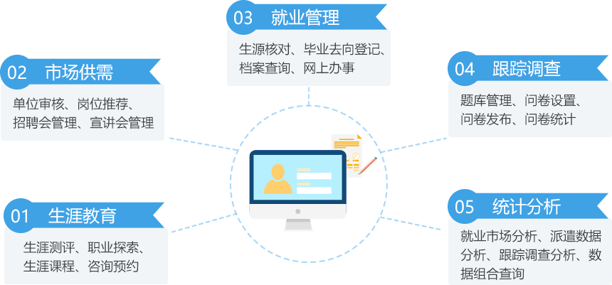 진로교육, 취업관리, 사후조사, 통계분석 등의 전 과정 관리를 다룬다